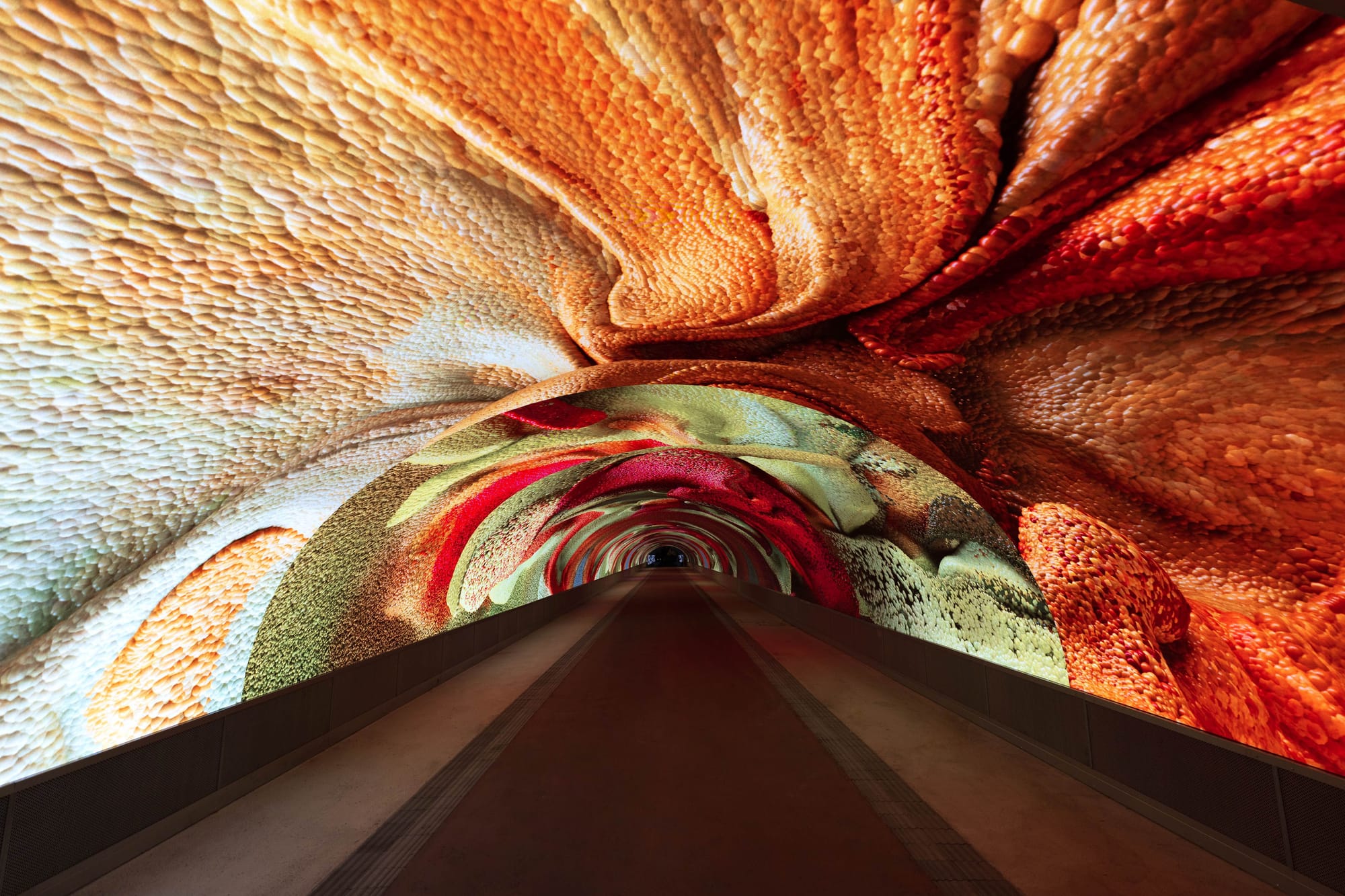 Protagonista dell’esperienza è “Data Tunnel”, l’imponente installazione site-specific di Refik Anadol, tra i massimi esponenti internazionali della digital art. Inaugurata lo scorso 16 dicembre, l’opera, basata su modelli di intelligenza artificiale addestrati su dati ambientali, immerge i visitatori in un flusso visivo continuo che rielabora natura, memoria e informazione in un paesaggio digitale in costante trasformazione.