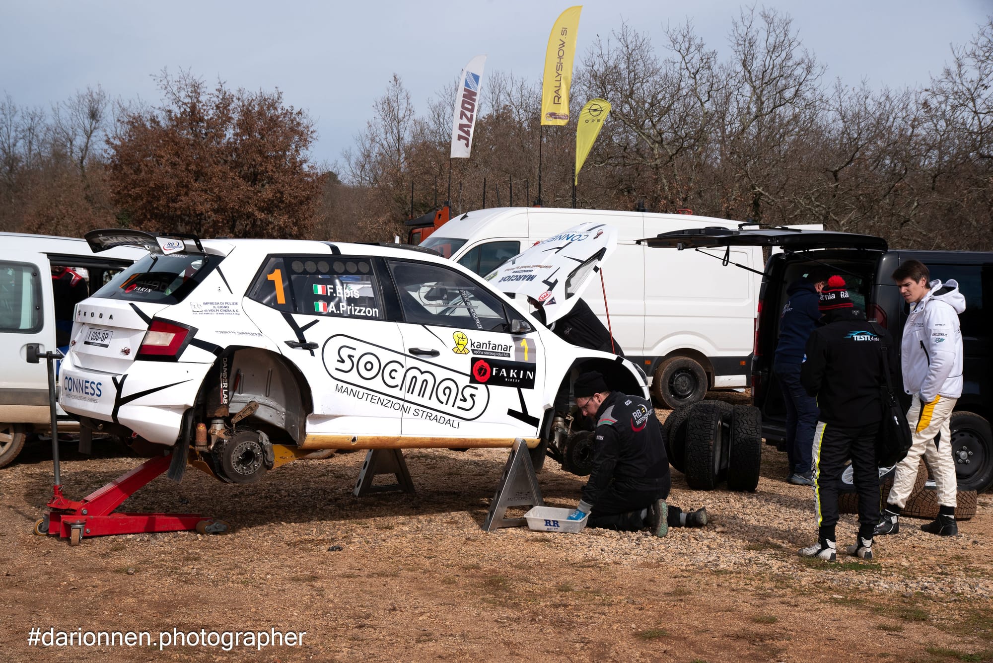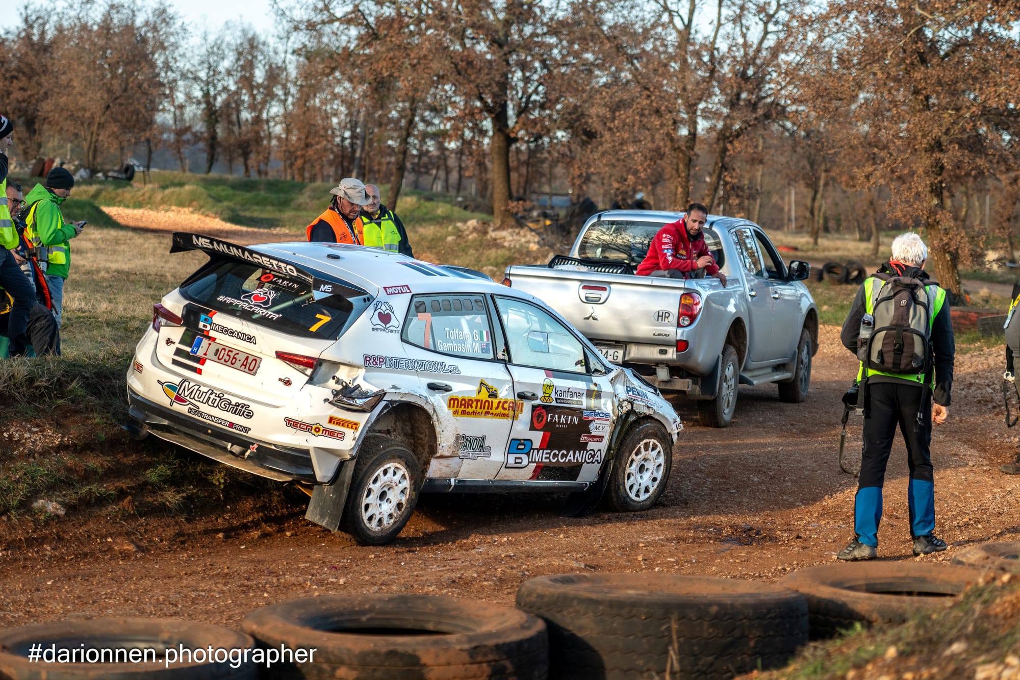 Il via alle danze è stato dato sabato mattina dallo shakedown che si è disputato nel crossodromo di Gambetici, opportunamente modificato con l’allungamento verso l’adiacente zona boschiva, seguito poi nel pomeriggio dalle due prime prove speciali sul medesimo percorso di circa 3 chilometri. Un tracciato tortuoso che non lascia respirare un attimo, caratterizzato da tratti lenti di curve e controcurve in sequenza e tratti più veloci dove tenere giù il piede è d’obbligo se si vuole siglare il miglior crono. Giovanni Toffano, con Matteo Gambasin alle note, è risultato il più veloce di tutti nello shakedown ma nelle prove pomeridiane è stato bersagliato dalla sfortuna, prima con una sbandata che lo ha portato ad incastrarsi addosso ad alcune vetture (da rottamare, ndr) ai bordi del percorso, poi con un ribaltone nel misto finale della seconda P.S. dove si è messo la macchina per cappello dando addio ai sogni di gloria (è comunque ripartito il giorno successivo).