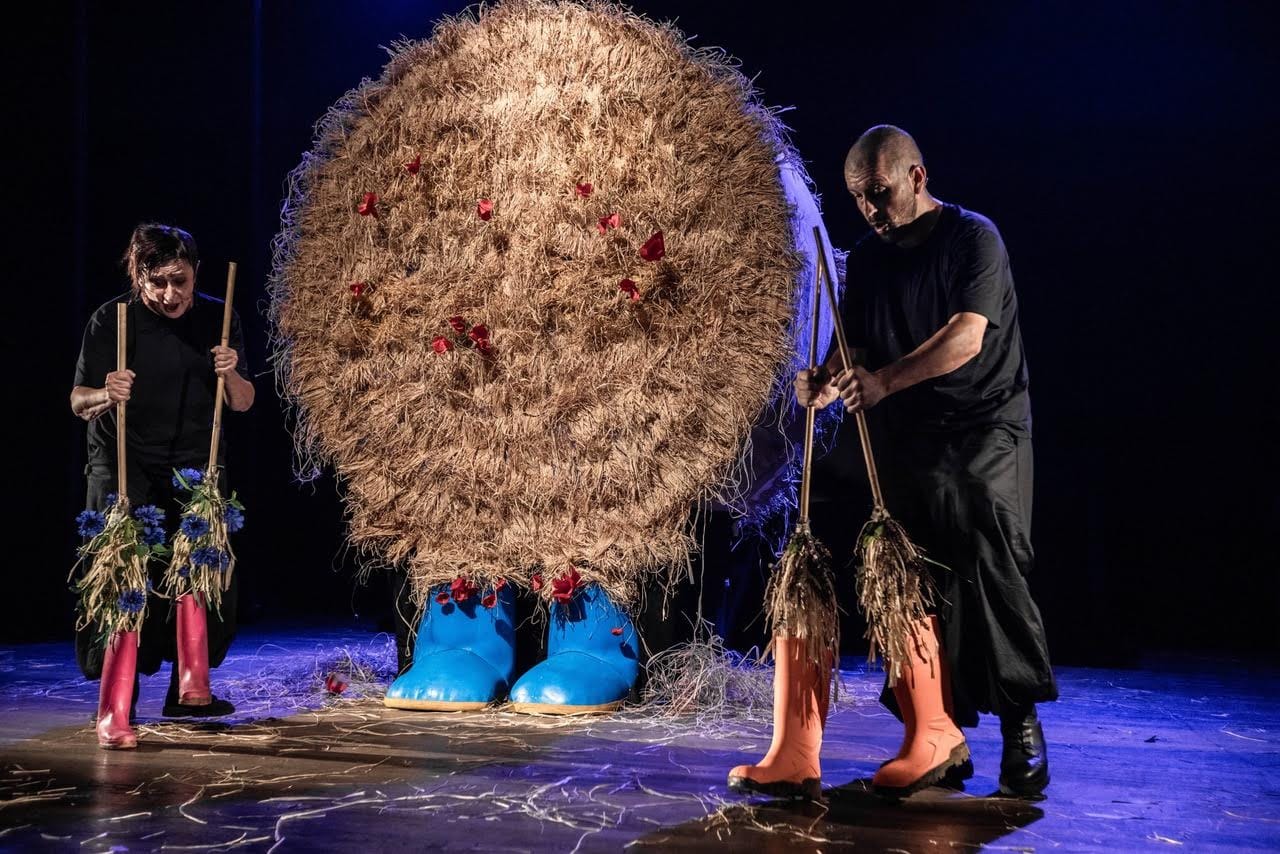 Nei campi i bambini di un piccolo paese giocano tra loro. Ai loro piedi hanno stivali colorati che portano sempre. Il gioco è il loro unico pensiero che li rende felici e spensierati. Intorno a loro il cicaleccio estivo. Papaveri, margherite, fiordalisi, spighe ed una grande balla di fieno di paglia su cui salire la sera, per guardare il cielo ed esprimere desideri davanti alle stelle cadenti. La grande balla di paglia raccoglie in sé le vite dei pochi abitanti del paese e si anima di voci, corpi e musiche. Amanda è una piccola bambina. I suoi stivali sono azzurri come il cielo in estate. Vive con il papà, la mamma e la nonna che la amano. Amanda ha tre amici inseparabili e con loro condivide piccole parole, giochi e grandi risate.